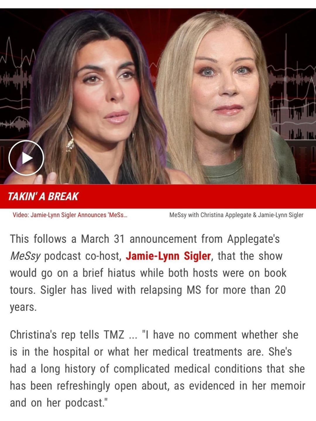 I hope Christina can find her way back from this and it’s not as serious. Her journey is really inspiring to us who have seen the real side.