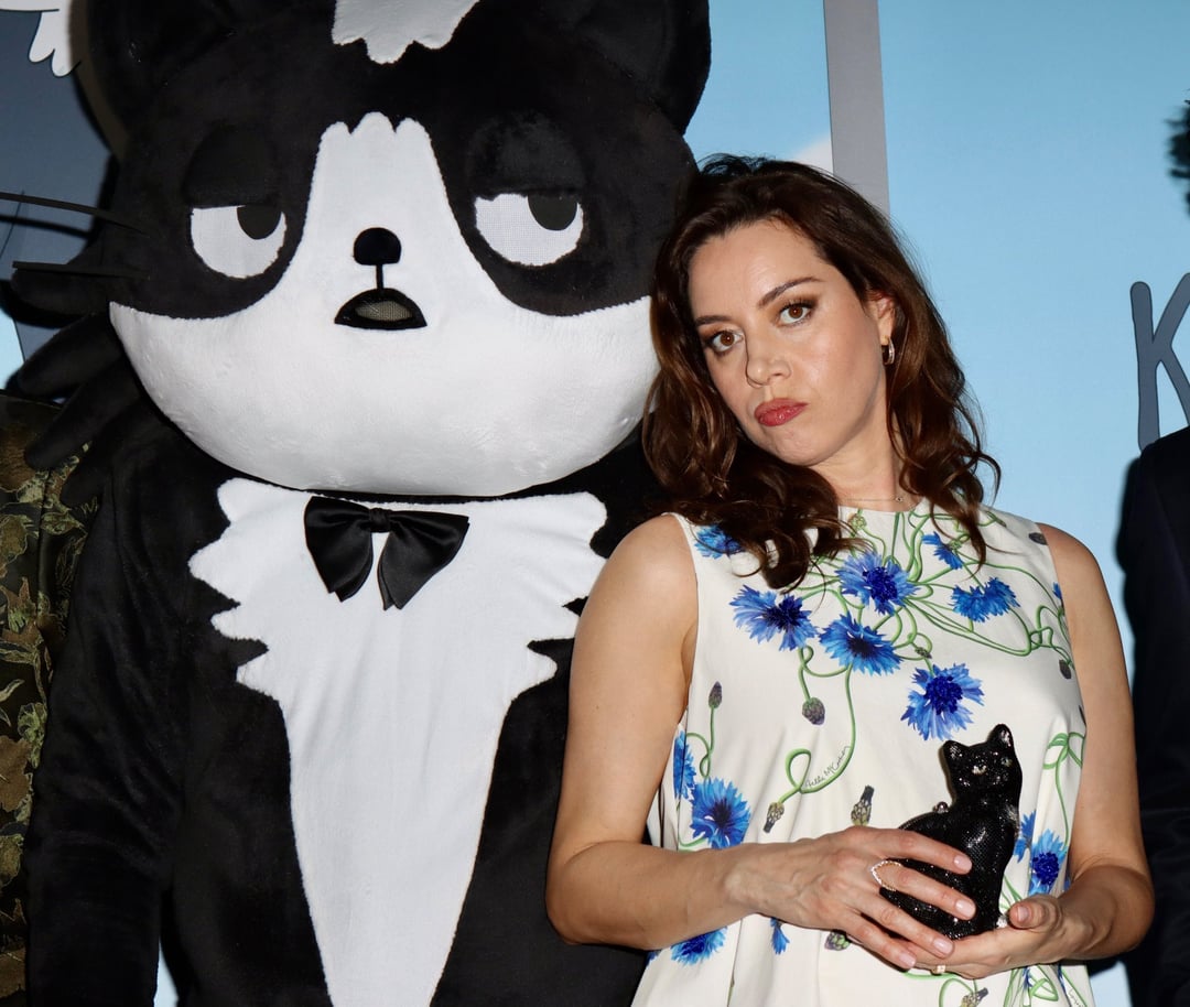 She’s looking great. She’s got the pregnancy glow, and I think it’s adorable how she alternates between holding the cat statue and holding her belly.