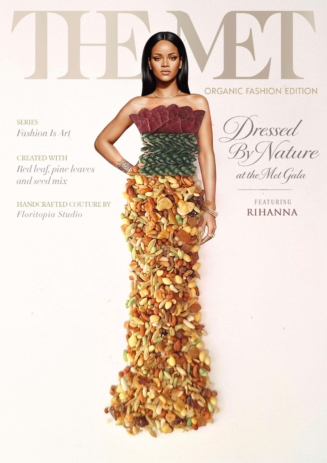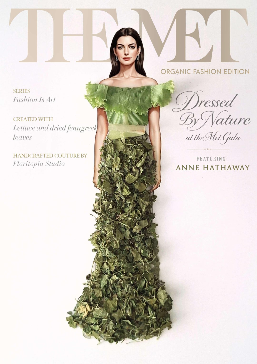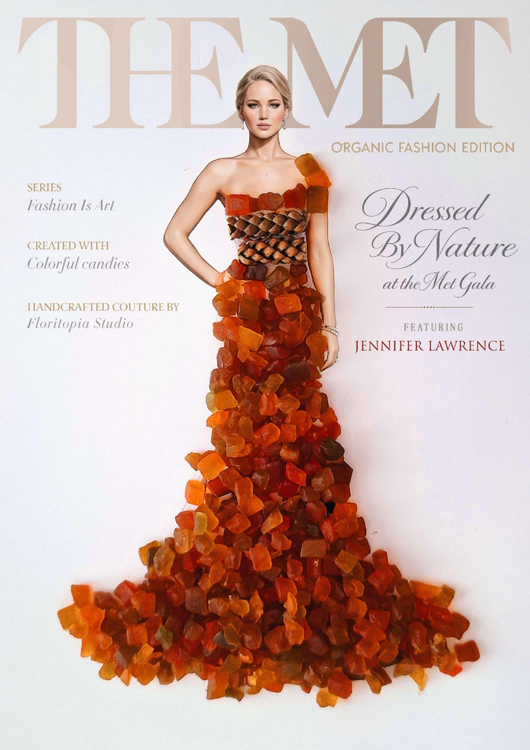 I created a series of magazine-style covers imagining Hollywood stars in couture gowns made from everyday food and organic elements for the Met Gala 2026. A blend of fashion, nature and red-carpet fantasy inspired by the ‘Fashion Is Art’ theme. Which look would win best dressed?