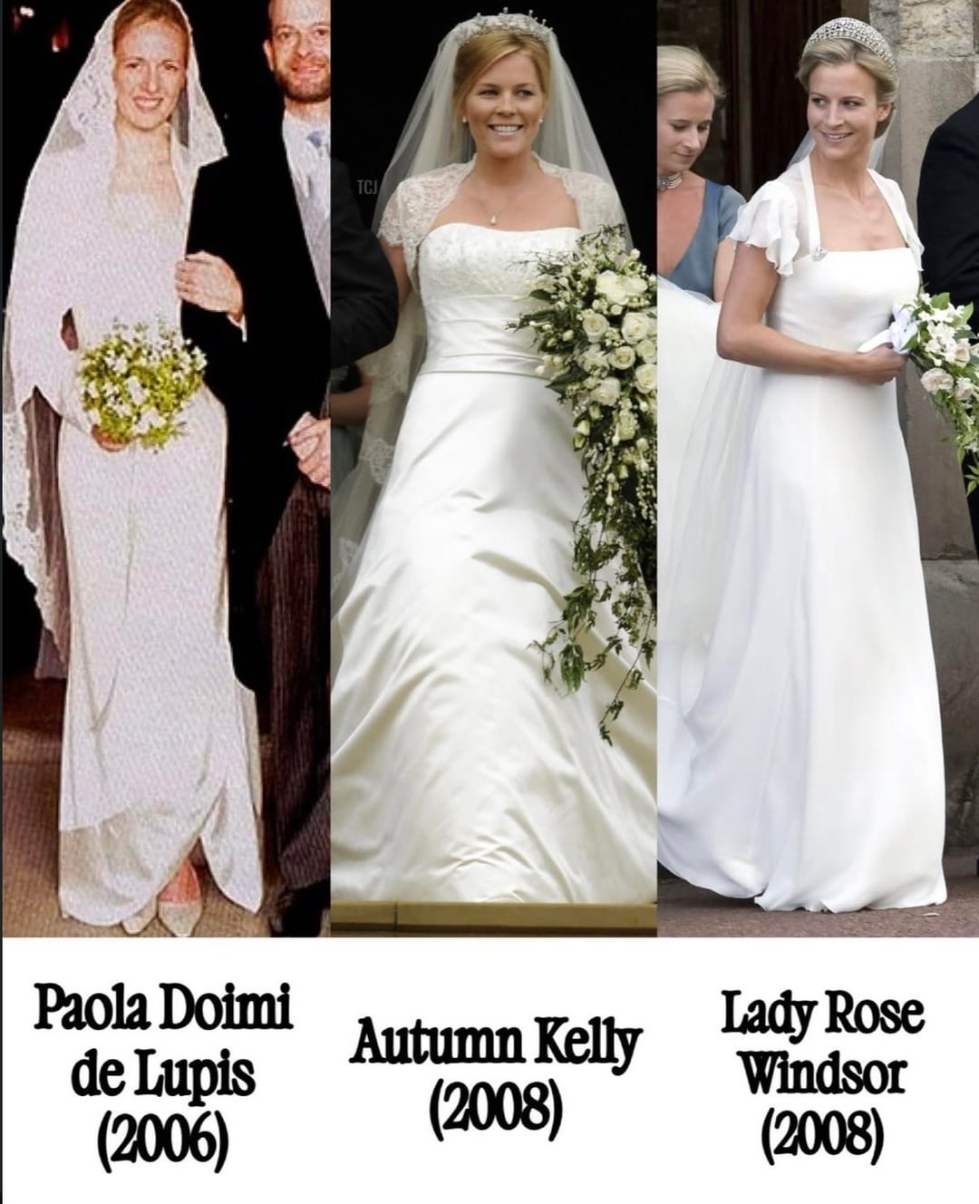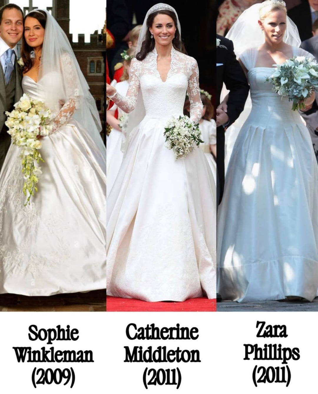 I love the top of Zaraβs but am not a fan of the obvious seam on the bottom. Lady Roseβs is gorgeous to me. Anneβs first dress looks so much like my aunts who were married in the seventies.