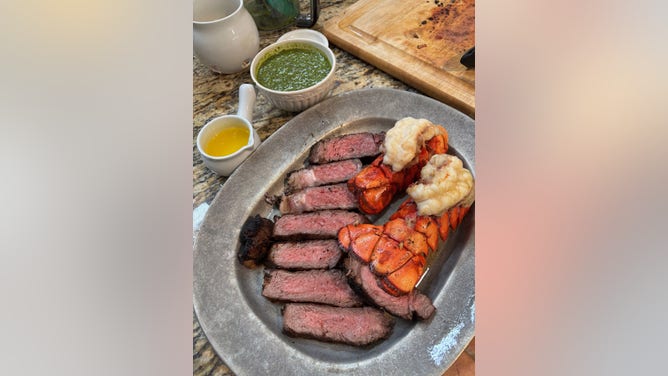 My wife and I hosted two families with five kids over eight days starting just before Easter.  This was the celebratory meal I prepared when we got our house back last Sunday.  Ribeye cooked at 800 degrees and lobster tail. Chimichurri with garden herbs I grew. Glorious.