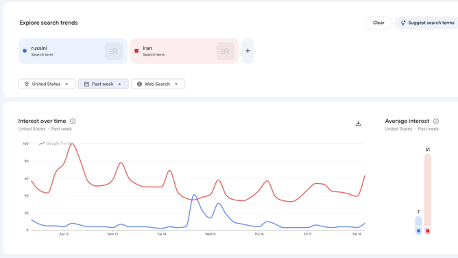 I’ll mark you down, RJM. I hear you, but I also know that Russini was the No. 1 Google Trend in the United States last week. At one point, Russini was a bigger Google Trend than Iran. Let that sink in.