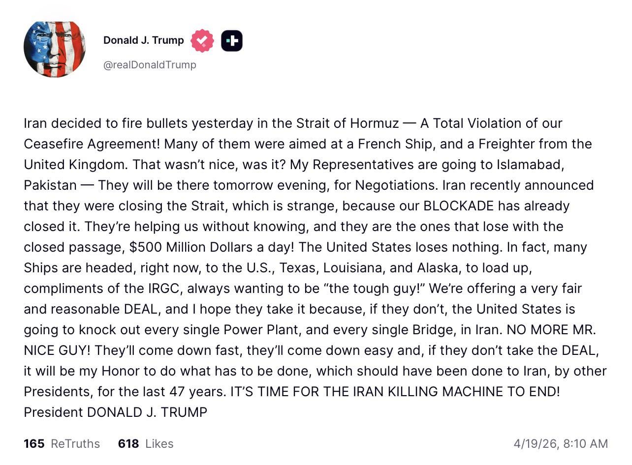 “It’s time for the Iran killing machine to end” as he threatens to wipe out an entire population of people.