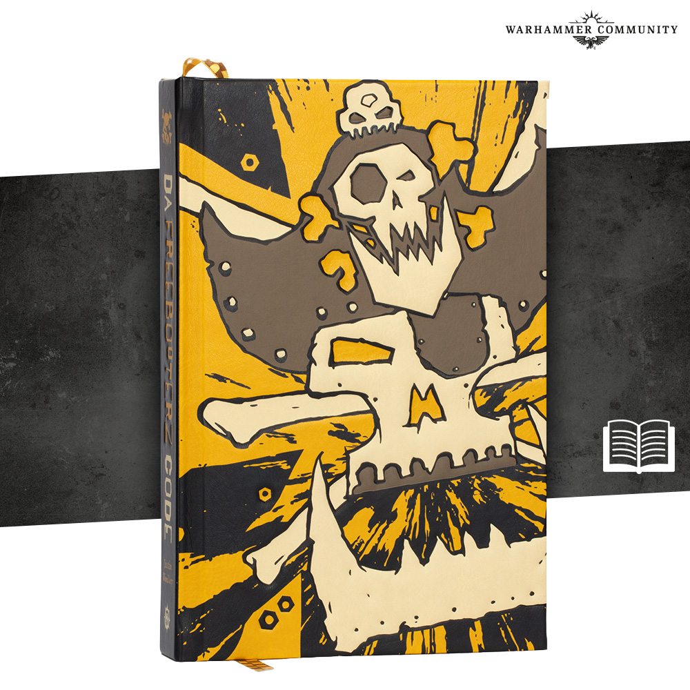 Da Freebooterz Code is the latest Black Library novel by Justin Woolley, author of Catachan Devil. This striking Special Edition features an embossed cover, printed page edges and a yellow and brown checkerboard-pattern page marker ribbon, plus the short story Horntoof – which tells of the kaptin’s reluctant rise to power.