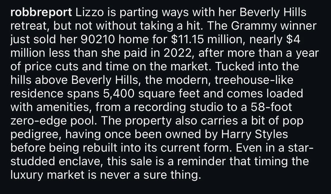 I know Lizzo was popular at her peak, but was she ever ā15 million dollar homeā popular? Sounds like she thought the money faucet would never dry up