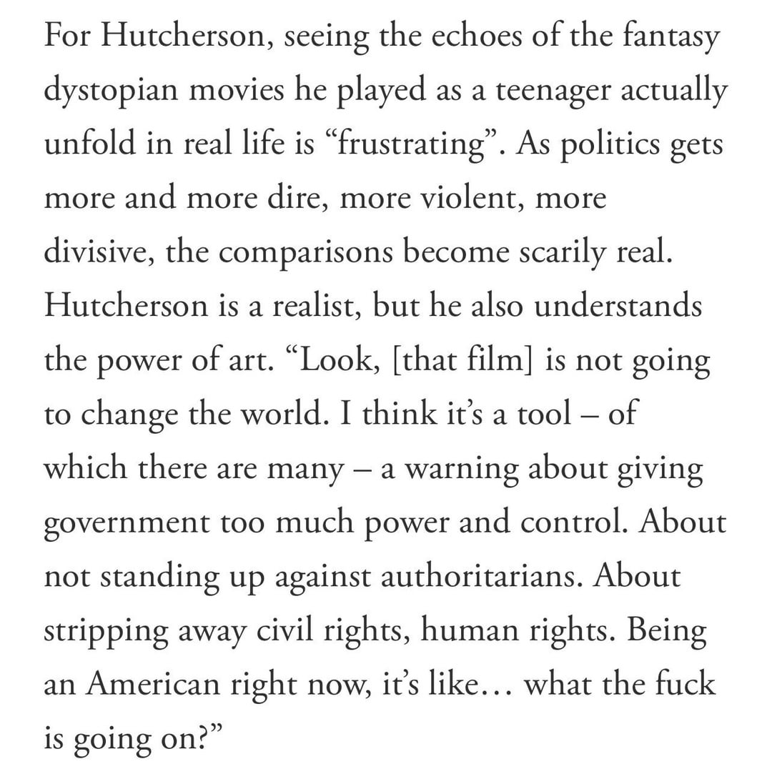 he’s always been very outspoken, even before thg gave him a huge platform I knew about him as being pretty active with certain organisations. like, I knew him more for him being pretty ‘political’ moreso than I knew him for anything outside of bridge to terabithia before he got hunger games