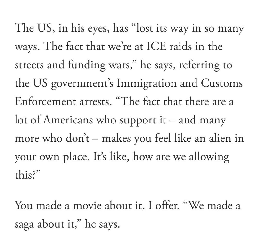 He’s taking a stand against all the fascists. ICE, Taylor Swift fans..
