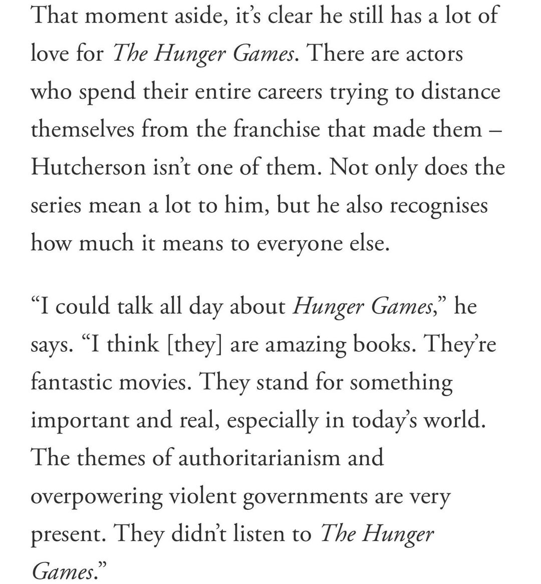 i kinda respect when actors don’t pretend they’re “above” the thing that made them 😭 like you can tell he actually cares about it and what it meant… i used to be obsessed with hunger games and it lowkey shaped how i see stuff like this now lol