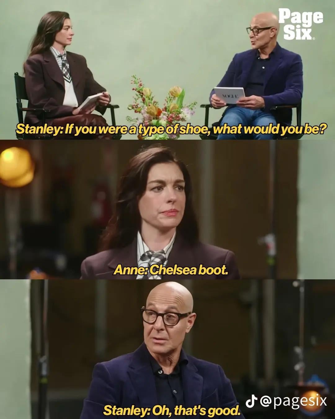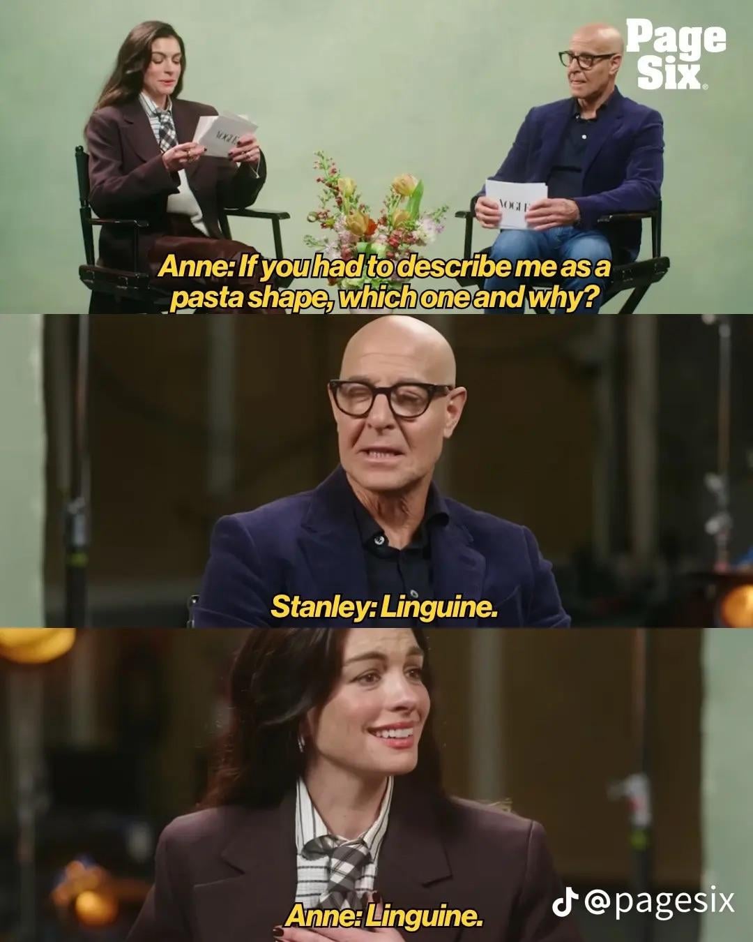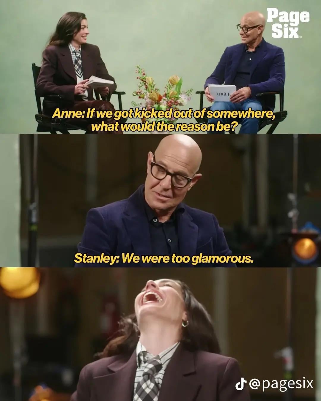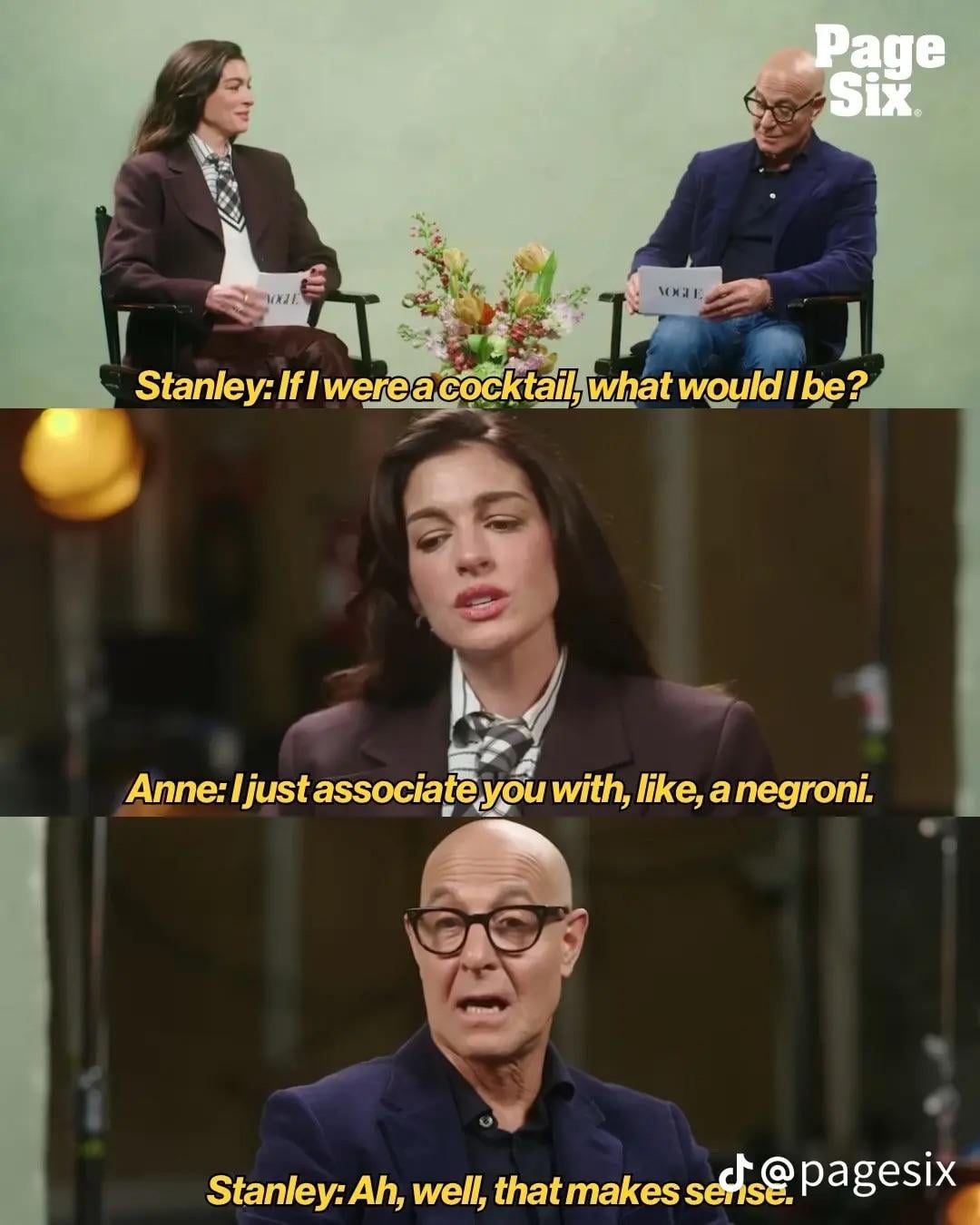 Stanley Tucci looks a bit like bald Stephen Colbert here.