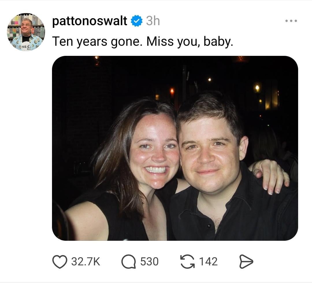 Patton Oswalt visited my high school sometime in 2018/2019 to speak about Michelle, who graduated from my school. I remember being very affected by his words and how he spoke about her. Rest in peace Michelle ❤️