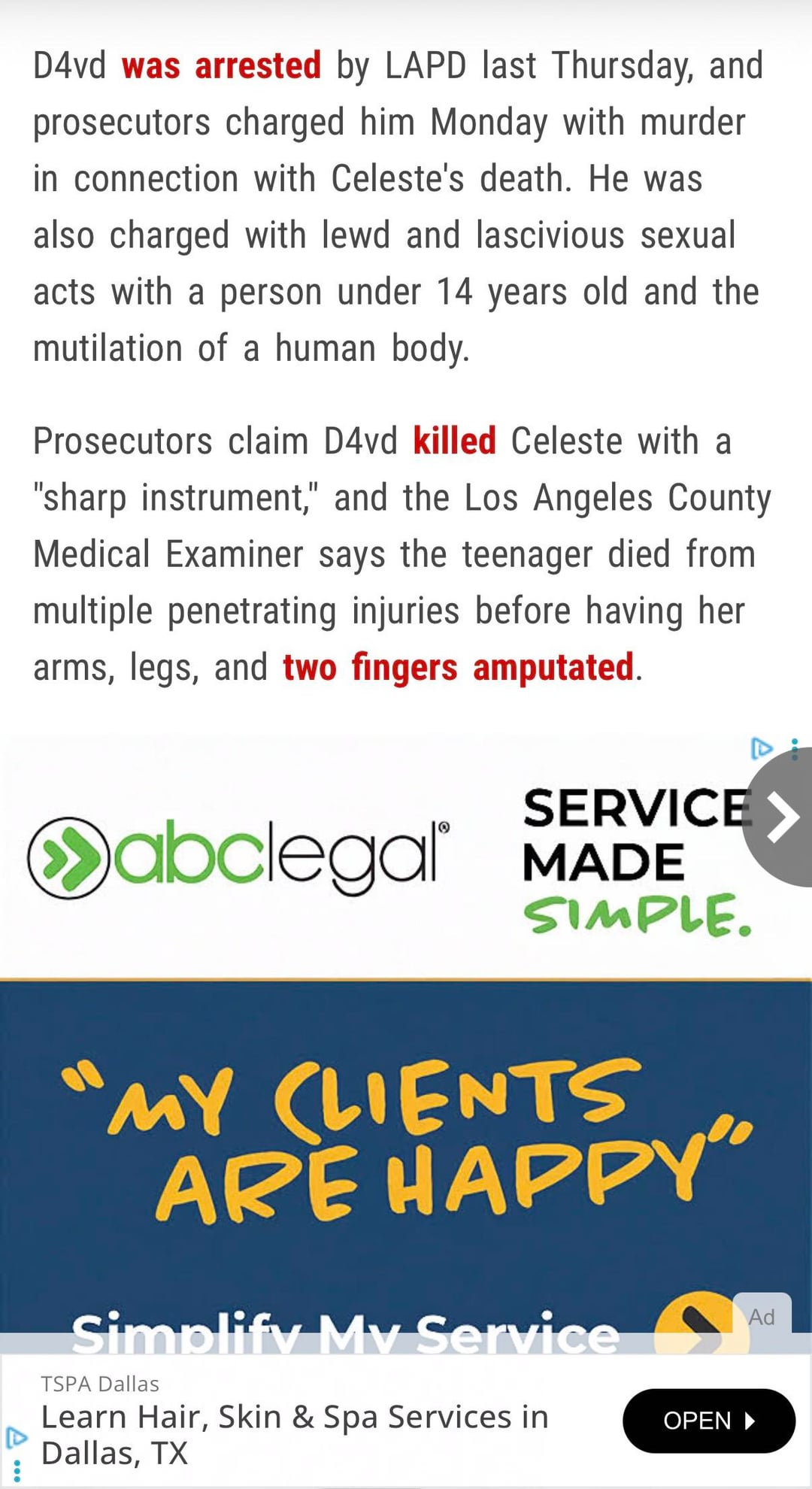 >Prosecutors claim D4vd killed Celeste with a “sharp instrument,” and the Los Angeles County Medical Examiner says the teenager died from multiple penetrating injuries before having her arms, legs, and two fingers amputated.