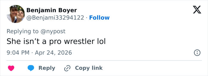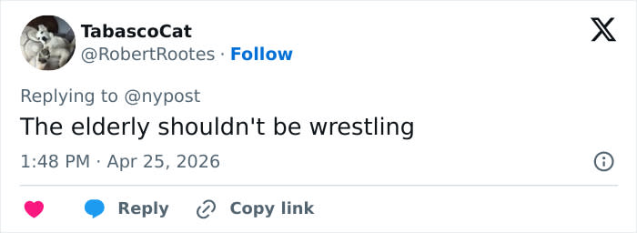 One user bluntly said, “No girl…just sit this one out,” while another added, “60 years old. Wrestling…”