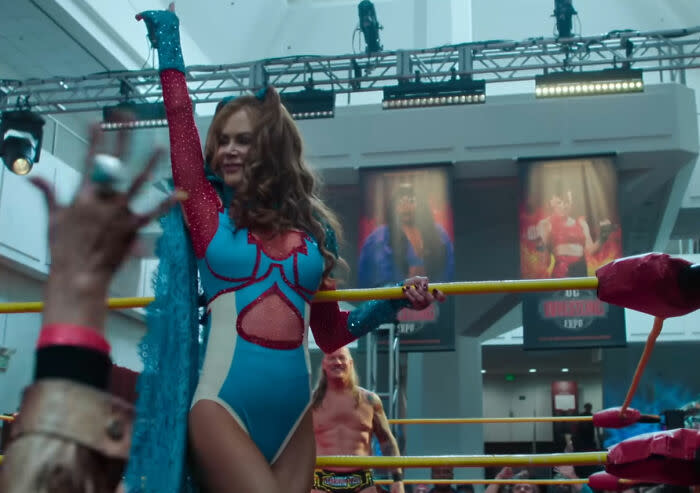 Nicole Kidman stars as Lace, a retired professional wrestler turned lawyer, in the Apple TV+ series Margo’s Got Money Troubles.