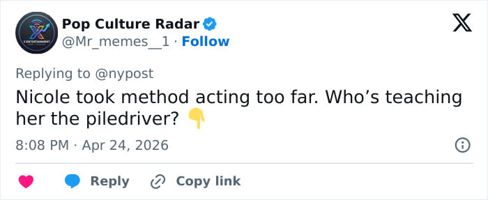 One social media user reacted, “Nicole took method acting too far…” while another added, “Nicole….. We’re getting older now.”