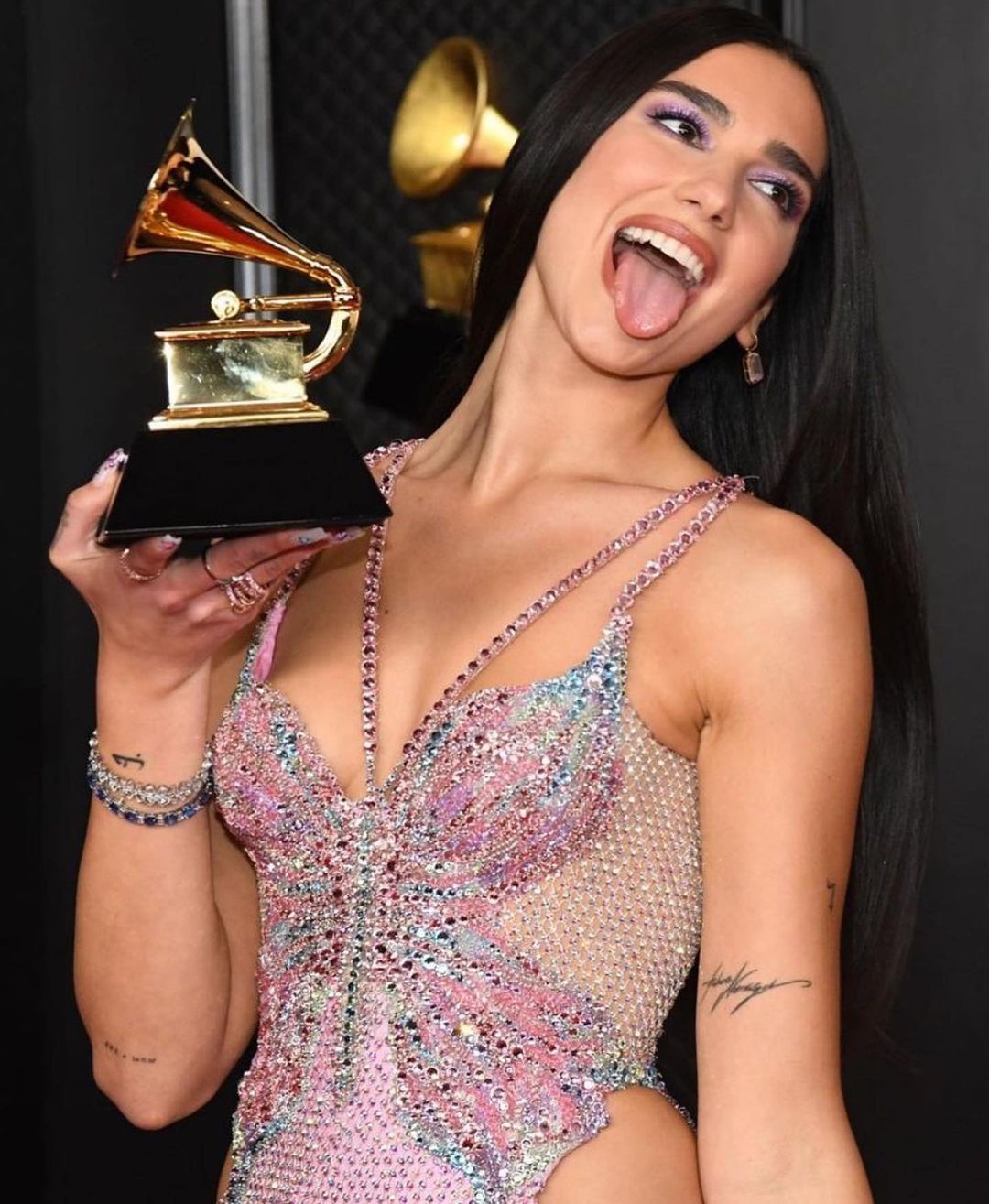 Best Pop Vocal Album for Future Nostalgia 🌕✨!!!!! A wonderful night, thank you @recordingacademy 💋 thank you @donatella_versace and the unmatched @versace team for my one of a kind dream dress and all my dream outfits throughout the night! So lucky for your love and support!! 🦋🦋🦋🦋 ~ more pics incoming duh…