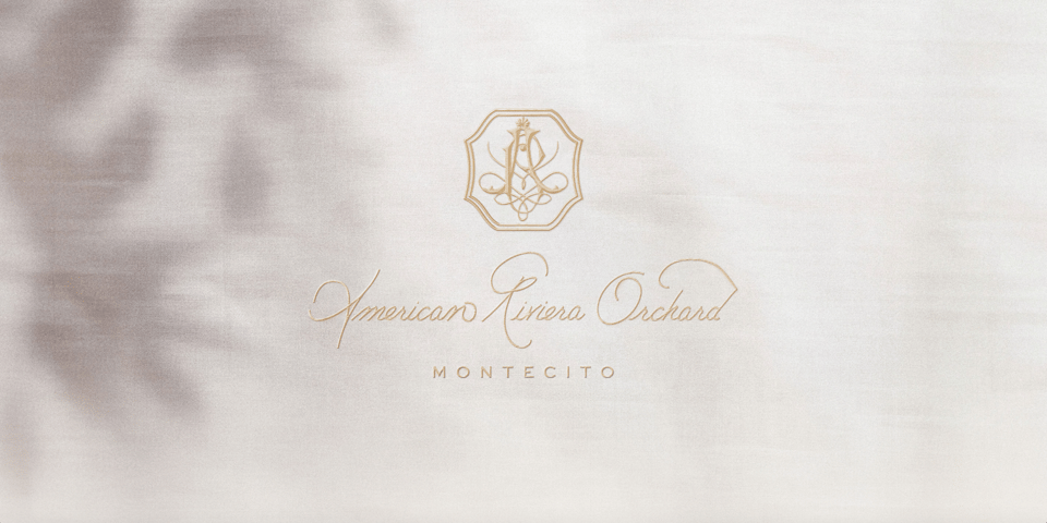 American Riviera Orchard’s logo is an embroidery style monogram with an intertwining of an A and an R, in an ancient graphic tradition that invokes heritage and nobility.
